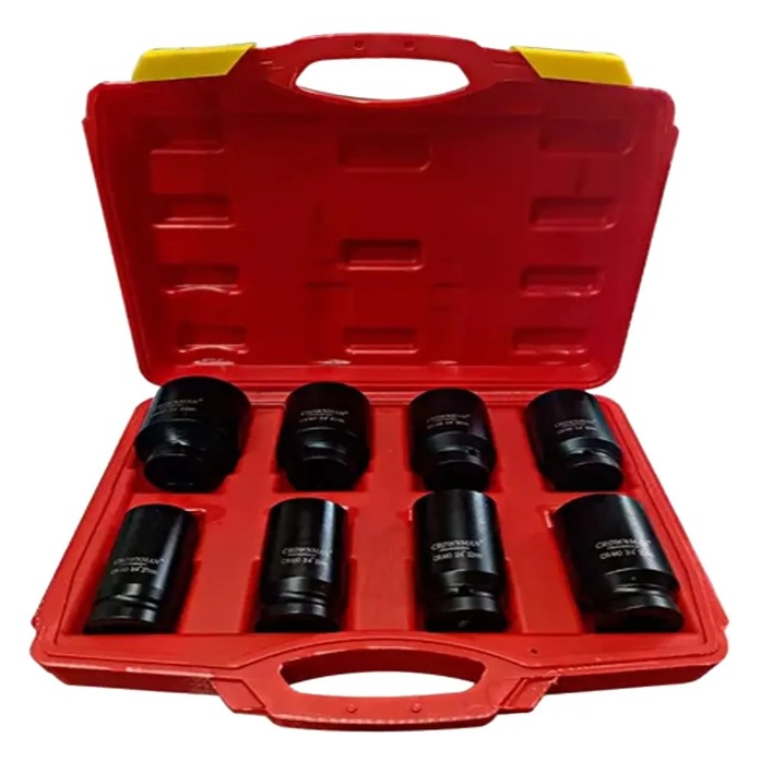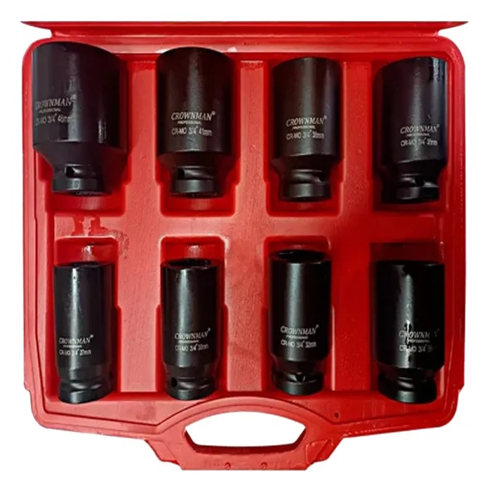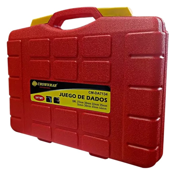 Cantidad: 8 piezas. Características: - Cuadrante: 3/4 pulgada. - Medidas: 27, 30, 32, 35, 36, 38, 41 y 46mm. - Dados Hexagonales. - Largo: 8cm. - Profundidad: 5cm - Incluye caja plástica de almacenamiento.